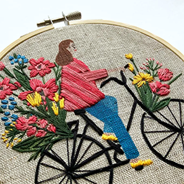 Подарочный набор для вышивания Не белый лист "Девушка на велосипеде с цветами" вышивка в свободной технике, гладью, с обучением