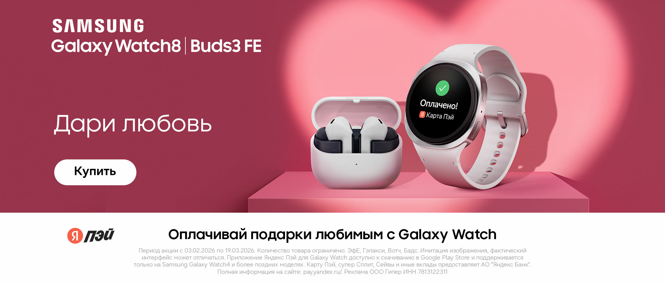 Здесь можно купить товары от магазина "Samsung - фирменный магазин" как вам удобно: с оплатой частями в сплит, с доставкой в пункт выдачи, с доставкой курьером.
