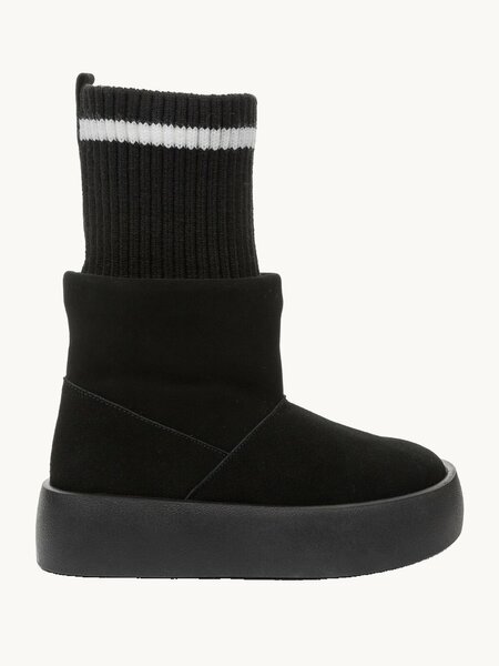 Достоинства:замша , мех натуральные. качество хорошее Недостатки:очень широкий взъем вылетает пятка. даже широкая стопа пятку не держит ,как тапки шлёпает. подошва тяжелая. Комментарий:сдавать не стала носила в обувную мастерскую приклеили на пятку вставку чтобы пятку придерживала и вставила войлочную стельку после этого стало лучше. посмотрим ,как будет в процессе носки. в целом качество отличное.