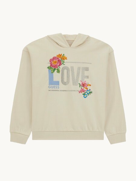 Худи GUESS для девочек, созданное для зимнего сезона, сочетает в себе стиль и комфорт. Изготовлено из 100% хлопка, что обеспечивает гипоаллергенность и долговечность. Размер 12 лет, кремово-белый цвет.
