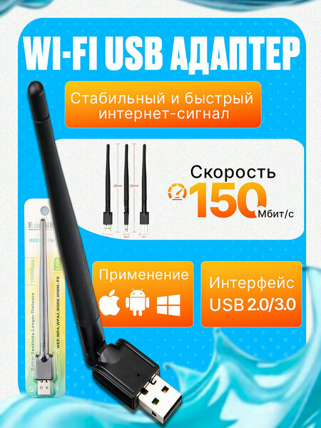 ⭐ USB Wi-Fi Адаптер MT7601 – Стабильный интернет всегда под рукой! ⭐ Скорость до 150 Мбит/с | ✅ Внешняя антенна 5 dBi | Интерфейс USB 2.0 | Совместим с Windows / Mac / Linux Если на вашем компьютере нет Wi-Fi или сигнал слабый — компактный и надёжный USB Wi-Fi адаптер MT7601 решит эту проблему. Оснащённый чипом MediaTek, он обеспечит вам быструю, стабильную и безопасную беспроводную связь. Стабильный сигнал даже через стены Благодаря внешней антенне с усилением 5 dBi, адаптер отлично принимает сигнал даже на большом расстоянии от роутера. Он прекрасно работает в квартирах и офисах, где сигнал часто гасится стенами. Вы сможете смотреть видео, участвовать в онлайн-звонках и скачивать файлы без перебоев и лагов. Компактный размер – мощные возможности Миниатюрный корпус удобно брать с собой: он поместится в кармане или сумке. Просто подключите адаптер к USB-порту и установите драйвер (в большинстве систем — автоматически). Всё готово — вы в сети! Чипсет MediaTek MT7601 – Надёжная основа стабильного подключения Современный чип обеспечивает скорость передачи данных до 150 Мбит/с. Этого достаточно для просмотра фильмов, видеозвонков, онлайн-игр и скачивания крупных файлов. При этом устройство экономично расходует энергию и не нагревается даже при длительном использовании. ️ Технические характеристики: ✅ Чипсет: MediaTek MT7601 ✅ Интерфейс: USB 2.0 (обратная совместимость с USB 1.1) ✅ Диапазон частот: 2.4 ГГц ✅ Скорость передачи данных: до 150 Мбит/с ✅ Антенна: внешняя, усиление 5 dBi ✅ Совместимость: Windows XP / Vista / 7 / 8 / 10 Mac OS Linux (Ubuntu, Debian и др.) ✅ Стандарты: IEEE 802.11 b/g/n Преимущества – Почему стоит выбрать именно MT7601? Простота установки (Plug & Play) Никаких специальных знаний не нужно — подключаете и пользуетесь. В большинстве случаев драйвер устанавливается автоматически. Усиленная внешняя антенна В отличие от встроенных антенн, обеспечивает стабильный сигнал даже в удалённых зонах. Экономия энергии и долговечность Работает долго без перегрева, не тормозит систему. Компактный и удобный для поездок Подходит для использования дома, в офисе и в поездке. Применение – Универсальный помощник для подключения к Wi-Fi Настольный ПК – если нет встроенного Wi-Fi Ноутбук – усиление слабого сигнала или обновление старых моделей Онлайн-игры – стабильный пинг, надёжная связь Скачивание файлов и потоковое видео – быстро и без прерываний ❗ Важно: Адаптер не поддерживает Smart TV и ТВ-тюнеры. Предназначен только для ПК и ноутбуков! "Слабый сигнал Wi-Fi? MT7601 справится!" "Быстрая скорость – стабильный интернет всегда с вами!" "Максимум качества за минимальные деньги!" "Нет Wi-Fi? Теперь есть решение!" "Подключи и пользуйся – просто и удобно!"