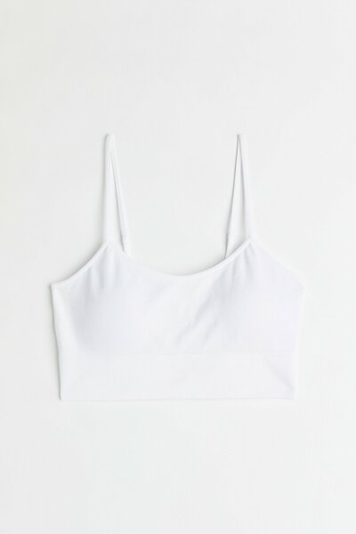 Бюстгальтер H&M, выполненный в белом цвете, предлагает сочетание комфорта и стиля. Размер XL обеспечивает идеальную посадку для вашего удобства. Этот бюстгальтер станет отличным выбором для повседневного ношения и особых случаев. Его безрукавный дизайн, открытые плечи и тонкие бретели делают его подходящим для ношения под лёгкими топами и платьями.