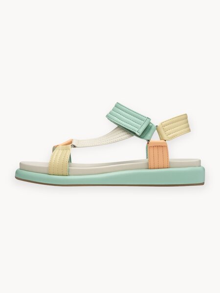 Достоинства:Ой. они такие милые. Подборка цветов идеальна для моего летнего гардероба. Мятно-зеленые ремешки преобладают и желтоватые ремешки оживляют. Удобно охватили ногу. Размер в размер, на средней полноты ножку. Не натирают. Недостатки:не нашла Комментарий:Очень милые сандалики, стали любимыми в прошедшем лете, моются легко, почти не износились.