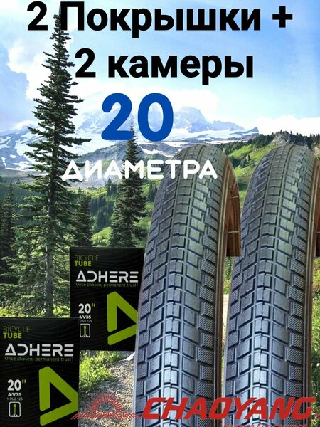 2 Покрышки + 2 камеры на 20 диаметра колеса. ADHERE