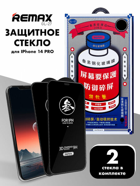 Защитное стекло для Айфон 14 Pro Remax GL-27, спиртовая салфетка из микрофибры, стикеры для удаления пыли, инструкция по наклеиванию, надежная упаковка