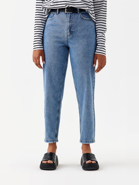 - Свободные в бедрах джинсы mom со слегка потертыми зауженными штанинами - Высокая посадка в талии - Застежка на молнии и пуговице - 5 карманов - Ремень из искусственной кожи в комплекте - Джинсы, с которыми не захочется расставаться - Параметры модели: рост 173, бюст 86, талия 63, бедра 92 - Размер на модели: S