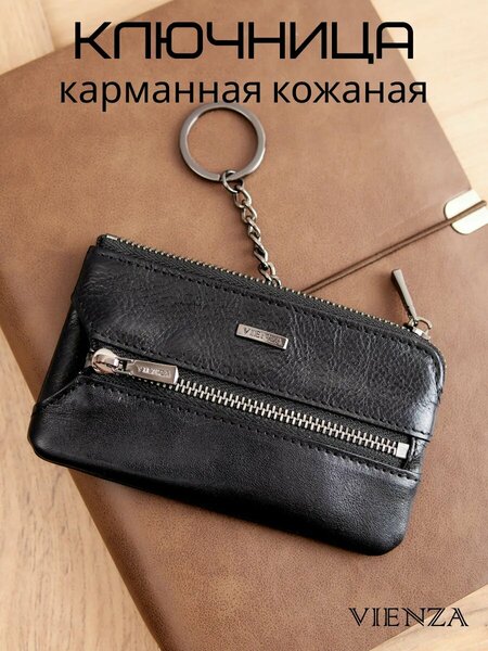 Ключница Vienza - стильный и функциональный аксессуар для хранения ключей. Изготовлена из мягкой натуральной кожи, что обеспечивает долговечность и комфорт в использовании. Ключница оснащена одним основным отделением на молнии, внутри которого кольцо на цепочке для ключей. На лицевой стороне находится молния, скрывающая 3 металлических кольца для ключей. Это позволяет удобно хранить ключи и другие мелкие предметы. Так же изделие оснащено защитой Ваших карт от RFID-сканирования. Ключница упакована в фирменную подарочную коробку, что делает ее отличным вариантом для подарка. Материал: 100% натуральная кожа, гладкая фактура. Размеры: высота 7.4 см, ширина 12.7 см, глубина 1.8 см. Выбирайте ключницу Vienza для надежного хранения ключей и других мелких предметов, и наслаждайтесь комфортом и стилем каждый день.