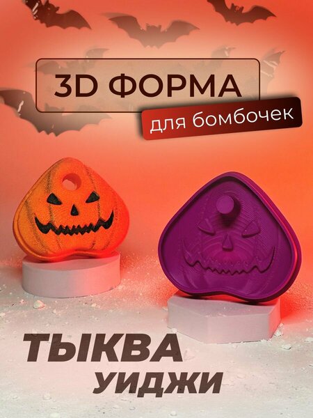 Halloween 3D форма для бомбочек Тыква Уиджи. Примерный вес готового изделия: 140 г (может варьироваться в зависимости от состава смеси). Мы уверены в качестве изготавливаемых нами 3D форм, но для того, чтобы они прослужили вам очень долго необходимо соблюдать небольшой список правил по уходу, а именно: - Не держать под прямыми солнечными лучами - Не подвергать температуре выше 60 градусов - Не замачивать в воде и других жидкостях - При промывке форм не использовать моющие средства, растворители и т. п. - Хранить в сухом и тёмном месте - После использования форм промыть их под проточной водой и сразу высушить, либо протереть влажной тканью и также оставить сушиться. При соблюдении всех вышеперечисленных пунктов наши формы прослужат вам очень долгое время!