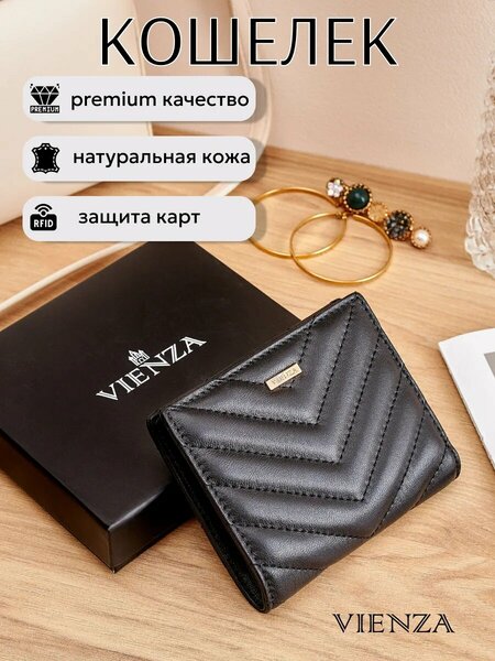 Женский кошелек кожаный со стеганым объёмным геометрическим узором - идеальный аксессуар, в котором объединены стиль, элегантность и функциональность. Бренд VIENZA предлагает изысканные изделия современного дизайна из натуральной кожи высшего качества и этот портмоне – не исключение. В нем Вы найдете удобство, качество и неповторимый стиль. Этот изысканный аксессуар, который сочетает в себе стиль и функциональность, не только выглядит роскошно, но и обеспечивает защиту Ваших карт от RFID-сканирования. Компактный, но вместительный портмоне без труда вмещает все ваши кредитные карты, купюры и монеты. Тонкий и легкий, он не займёт много места в сумке и легко поместится даже в маленькую сумочку или клатч. Снабжен отделением для купюр, слотами для 8 банковских и пластиковых карточек, водительских прав, удобной внешней монетницей на молнии. Модный картхолдер поможет вам аккуратно и организованно хранить все необходимые вам вещи, такие как кредитки, визитки. Удобная застежка на металлической кнопке. Кроме того, мягкая и плотная кожа придает аксессуару эстетичный вид и приятное тактильное ощущение. Стильный кошелёк упакован в фирменную коробку и станет презентабельным подарком.