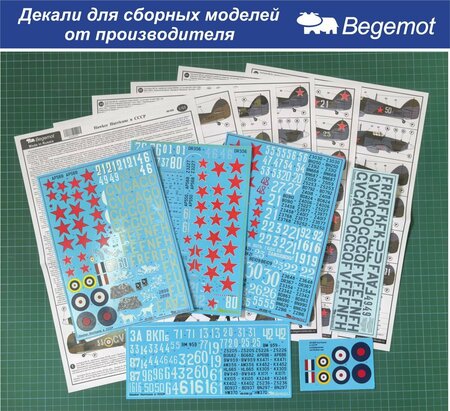 48-058 Деколь (Декаль) для сборной модели "Hawker Hurricane" в СССР 1/48 (BEGEMOT)