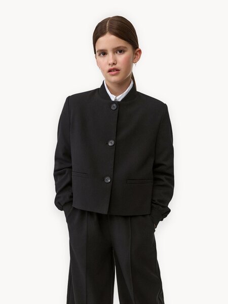 Укороченный черный жакет для девочки из школьной коллекции бренда SELA. Выполненный из мягкой костюмной ткани с содержанием вискозы, этот жакет приятен на ощупь, хорошо держит форму, а также комфортно сидит по фигуре, что очень важно для школьной одежды. Модель не сковывает движения и позволяет ребенку чувствовать себя комфортно в течение всего дня. Низкий трикотажный воротник и манжеты добавляют жакету оригинальности и делают школьный образ более неформальным. Длинные рукава, прорезные карманы и застежка на роговые пуговицы делает жакет еще более функциональным и удобным в использовании. Мягкая приятная к телу подкладка защищает от проникновения холодного воздуха. Модный короткий жакет легко сочетается с различными элементами школьной формы и обладает всеми необходимыми характеристиками, чтобы стать незаменимым элементом школьного гардероба и подчеркнуть индивидуальность каждой школьницы. Выбирая школьную форму от SELA, вы можете быть уверены в качестве и комфорте вашего ребенка на протяжении всего учебного года. На ребенке представлен размер 128.