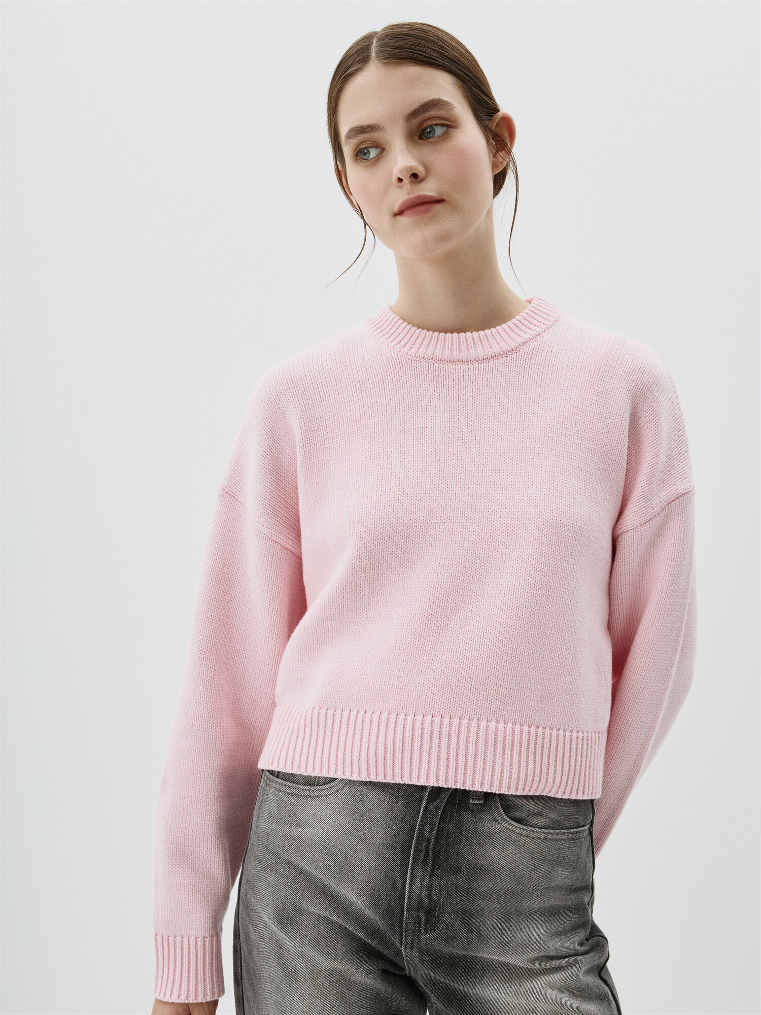Женский укороченный вязаный джемпер бренда SELA из мягкого смесового трикотажа с содержанием шерсти, который дарит ощущение уюта и тепла. Свободный крой со спущенной линией плеча и длинными рукавами делает этот джемпер универсальным и подходящим для фигуры любого типа. Он не сковывает движений и позволяет чувствовать себя комфортно в любой ситуации. Круглый вырез горловины добавляет нежности и женственности, прекрасно подчеркивая линию шеи. Манжеты и подол выполнены в рубчик, что придает дополнительную текстуру и создает более законченный образ. Этот джемпер станет отличным дополнением к любому гардеробу, позволяя легко сочетать его с различными предметами одежды. На модели представлен размер S. Рост модели 175 см.