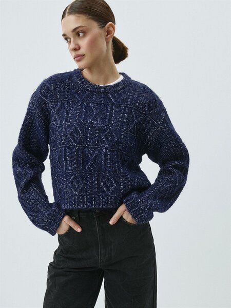Укороченный вязаный джемпер с рельефной вязкой косами