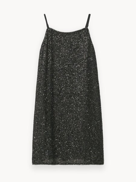 Нарядное платье из мягкой сетчатой ткани расшитой пайетками. Расслабленный силуэт. Тонкие регулируемые бретели. Трикотажная подкладка. Новогодняя коллекция. Сарафан Sela в черном цвете - идеальный выбор для праздничных мероприятий и торжеств. Удобный крой позволяет свободно двигаться, а пайетки добавляют блеска и изящества. Тонкие бретели придают изделию легкость и стильный вид, а трикотажная подкладка обеспечивает комфорт в носке. Этот сарафан отлично сочетается с различными аксессуарами, позволяя создавать неповторимые образы. Платье станет отличным дополнением гардероба каждой девочки, добавляя яркие акценты в зимние праздники.