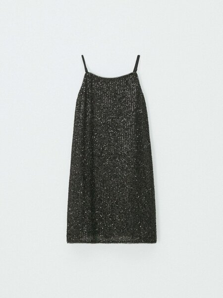 Нарядное платье из мягкой сетчатой ткани расшитой пайетками. Расслабленный силуэт. Тонкие регулируемые бретели. Трикотажная подкладка. Новогодняя коллекция. Сарафан Sela в черном цвете станет отличным дополнением гардероба для особых случаев и праздников. Элегантный дизайн и качественные материалы обеспечивают комфорт и стиль. Благодаря регулируемым бретелям, платье легко подгоняется под индивидуальные особенности фигуры. Идеально подходит для создания праздничного образа или вечернего выхода. Эта модель прекрасно сочетается с различными аксессуарами и обувью, что позволяет легко экспериментировать с образом, добавляя нотки индивидуальности и креативности.