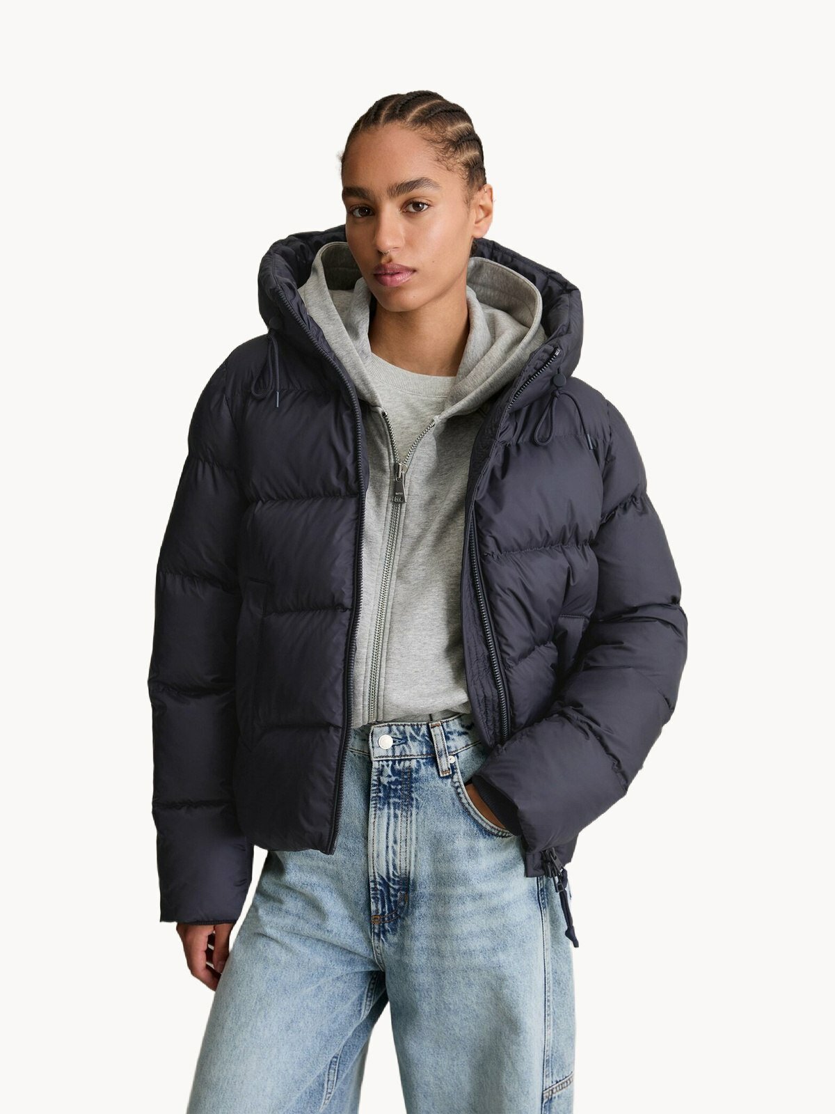 Прохладная, с толстой подкладкой, уютная и тёплая, изготовленная из переработанного водоотталкивающего полиэстера: повседневная короткая пуховая куртка с практичным несъёмным капюшоном. Модель верхней одежды от Marc O'Polo DENIM наполнена пуховым утеплителем из переработанного ПЭТ, который превращает отходы в согревающий комфорт. Сверхлёгкий и особенно простой в уходе наполнитель Fibre Balls после стирки возвращается к своей первоначальной форме. Покрой удобный и классический. Особенности модели: инновационная кулиска по краю капюшона, манжета с мелкой ребристой трикотажной вставкой, которая защищает от снега, молния спереди с подкладкой, вместительные прорезные карманы на кнопках и кулиска с эластичным шнуром по нижнему краю. Внутри есть практичный карман и эффектный логотип.