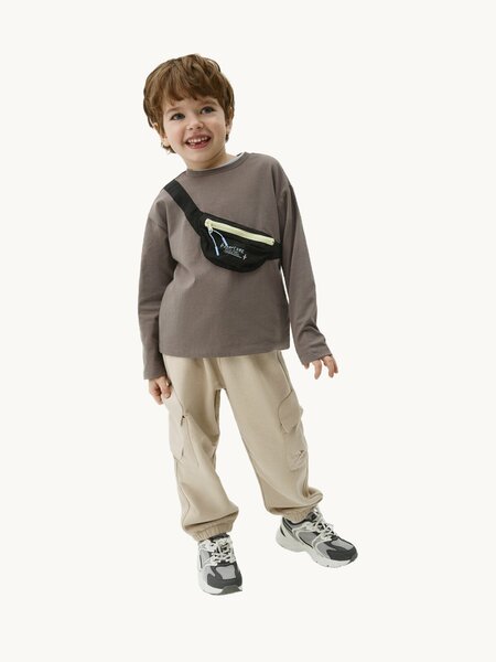 Джерси от бренда SELA — лонгслив для мальчиков. Модель представлена в дымчато-сером цвете, размер — 110. Представленный размер хорошо смотрится на ребёнке с размером 110.