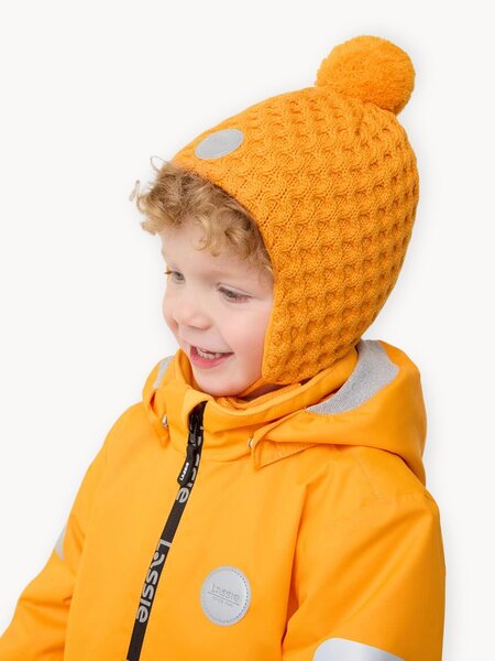 Шапка подходит для детей от 1,5 до 6 лет и станет незаменимой частью зимнего гардероба. Шерсть в составе хорошо согревает — можно смело бежать на прогулку даже в морозный день. Благодаря подкладке из хлопка нежной коже ребенка будет комфортно. Ветер больше не страшен! Ветронепроницаемые вставки на ушках надежно защищают от холодного воздуха. Ребенок может бегать, лепить снеговика или играть в снежки — шапка защитит от перегрева и сохранит комфортную температуру. А еще она отлично подходит для настоящих непосед — завязки не дадут головному убору случайно слететь. Прогулки в вечернее время станут безопаснее благодаря светоотражающим деталям. Ребенок будет заметен на дороге даже в темное время суток.