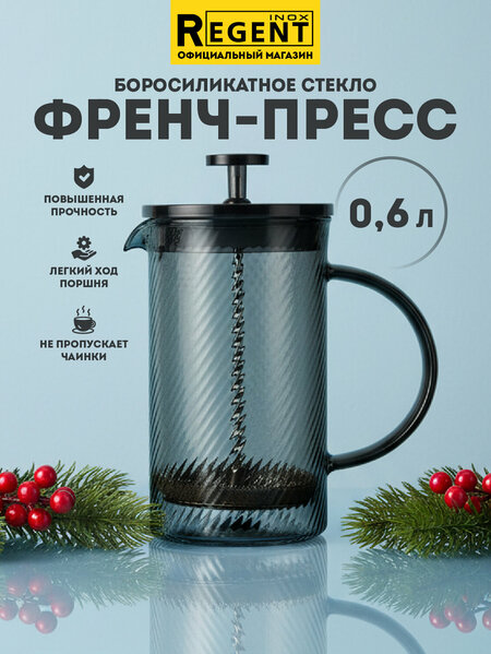 Френч‑пресс от Regent Inox — выбор ценителей изысканного вкуса, безупречного качества и продуманного дизайна. Колба изготовлена из боросиликатного стекла — жаропрочного материала, который: устойчив к температурным перепадам, не впитывает посторонние запахи, сохраняет первозданный вкус напитка. Прозрачные стенки позволяют визуально контролировать процесс заваривания и регулировать крепость по своему вкусу — это делает френч‑пресс идеальным стеклянным заварником. Ключевые преимущества конструкции: Поршень‑фильтр из нержавеющей стали марки 18/10 отличается высокой износостойкостью и рассчитан на длительную эксплуатацию. Носик с системой «анти‑капля» исключает проливание, обеспечивая аккуратное наливание горячего напитка. Термостойкая ручка не нагревается, гарантируя безопасное и комфортное использование. 1000 мл — оптимальный объём для семейных посиделок, приёма гостей или масштабных чаепитий. Фильтр эффективно задерживает чайные листья и кофейную гущу, позволяя получить чистый, насыщенный напиток без осадка. Эргономичная ручка и продуманная конструкция делают эксплуатацию максимально удобной и безопасной. Френч‑пресс Regent Inox станет стильной альтернативой традиционному заварнику, привнеся в интерьер кухни современные акценты и подчеркнув ваш профессиональный подход к приготовлению напитков. Это надёжный выбор для тех, кто ценит качество и комфорт с первого дня использования.