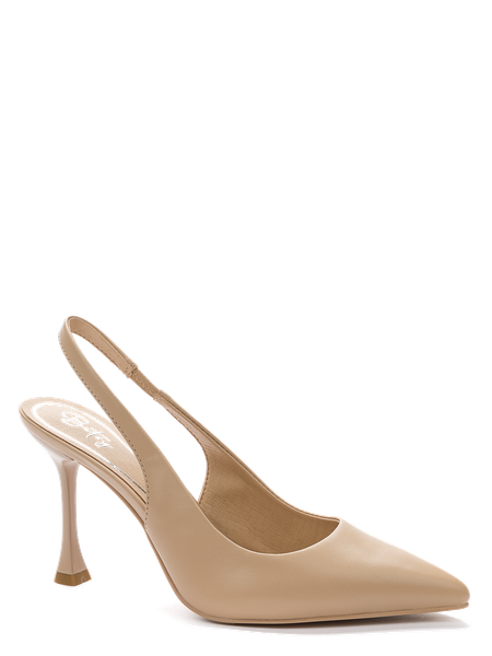 Эти нюдовые туфли станут отличной базой для вашего гардероба. Модель с закрытым острым носом и открытой пяткой выполнена из высокотехнологичной кожи. Износостойкая подошва обладает оптимальным сцеплением с поверхностью. Эластичный ремешок на щиколотке и высокий каблук-рюмка завершают образ.