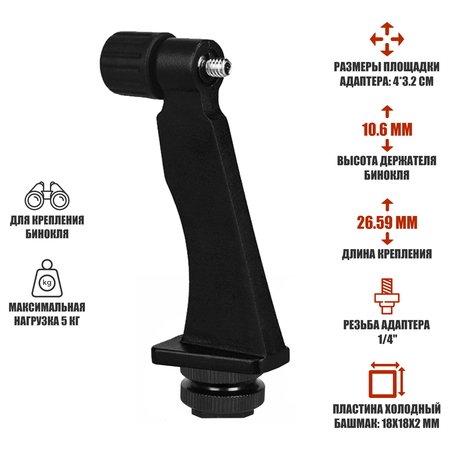 Важно: этот адаптер можно использовать только с биноклями, у которых есть стандартное резьбовое гнездо 1/4 дюйма.