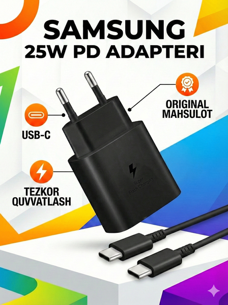 Samsung 25W PD Adapter USB-C - Быстрое Зарядное Устройство Оригинальный адаптер Samsung 25W PD (Power Delivery) - профессиональное решение для быстрой и безопасной зарядки ваших современных устройств. Основные характеристики: Обеспечивает быструю зарядку мощностью 25 ватт через интерфейс USB-C и полностью совместим с современными смартфонами, планшетами и другими устройствами с портом USB-C. Благодаря технологии Power Delivery ваше устройство заряжается в кратчайшие сроки. В комплект входит: