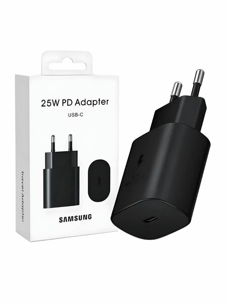 25W PD Adapter- это сочетание превосходной функциональности, актуального дизайна и обеспечение стабильной, надёжной работы вашего гаджета. Мощное и эффективное зарядное устройство, разработанное специально для премиальной линейки Samsung, поможет вам забыть о разряженном аккумуляторе. Тип зарядного устройства: Быстрое зарядное устройство типа c 25 Вт. Совместимость: Samsung, Xiaomi, Huawei, Oppo, Redmi, Iphone, Apple. Защищен от перегрева, короткого замыкания и перенапряжения. Адаптер Samsung USB-C мощностью 25 Вт — это настенное зарядное устройство, обеспечивающее быструю и эффективную зарядку совместимых устройств. Благодаря выходной мощности до 25 Вт этот адаптер может заряжать совместимые устройства на 70 % быстрее, чем стандартные зарядные устройства. Он использует технологию USB Power Delivery (PD) для регулировки мощности в соответствии с требованиями зарядного устройства, что обеспечивает более эффективную и безопасную зарядку.