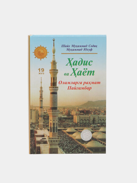 Шайх Муҳаммад Соди Муҳаммад Юсуф ҳазратларининг аламларига мансуб «Ҳадис ва Ҳаёт» туркумининг «Оламларга раҳмат пайамбар» деб номланган 19-жузи Ушбу китобда Аллоҳ таоло яратган бандалари ичида энг афзали, пайамбарларнинг охиргиси ва мукаммали блмиш Муҳаммад алайҳиссаломнинг муборак ҳаётлари билан мтаъбар ҳадислар орали яиндан танишиб чиасиз. Муаллиф: Шайх Муҳаммад Соди Муҳаммад Юсуф Нашриёт: «Hilol» нашриёт-матбааси Сана: 2021 йил (2015, 2016, 2019, 2020,2021.) Ҳажми: 584 бет ISBN: 978-9943-7035-2-0 Ўлчами: 84×108/32 Муоваси: атти