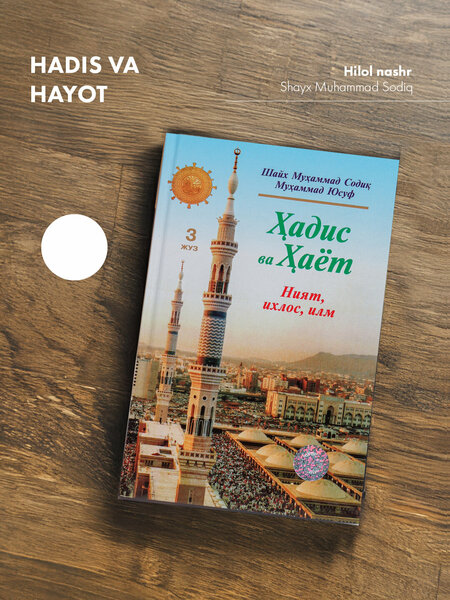 Шайх Муҳаммад Соди Муҳаммад Юсуф ҳазратларининг аламларига мансуб «Ҳадис ва Ҳаёт» туркумининг «Ният, ихлос, илм» деб номланган 3-жузи. Маълумингизким, «Ҳадис ва Ҳаёт» силсиласи машҳур аллома, оҳирадаги «ал-Азҳар» дорилфунуни мударрисларидан бири шайх Мансура Али Носиф ҳазратларининг «Ат-тож ал-жомеъ лил-усул фии аҳадийсур Расул» («Расул соллаллоҳу алайҳи васалламнинг ҳадисларидан аслларни жам илувчи тож») деб номланган улкан асарларига ёзилган комил ва шомил шарҳлардан иборат тпламдир. «Ҳадис ва Ҳаёт» силсиласининг дастлабки жузлари чоп этилиши билан китобсеварларнинг севимли асарига айланиб, кплаб мухлисларнинг жавонларидан, ммин-мусулмонларнинг албидан чуур ва муносиб рин олди. Эндиликда мазкур силсила таркибига кирувчи китоблар айтадан нашр илина бошланди. Ушбу жузларда дастлабки нашрларда йл йилган баъзи хато ва камчиликлар бартараф этилиб, илмий маълумотлар таҳи илинган блиб, бу мазкур нодир асар савиясининг янада юориро блишини таъминлади. Эътиборингизга ҳавола илинаётган «Ҳадис ва Ҳаёт» силсиласининг бу учинчи «Ният, ихлос ва илм китоби» аслида тасаввуф илмига оид мавзулардан ҳисобланади. албга боли бу мавзуни доимо аҳли тасаввуфлар шарҳлаб келганлар. олаверса, бу уч нарса банданинг каттаю кичик амалларининг абул блиши учун лозиму лобуд нарсалар эканлиги ҳар биримизга ойдек равшандир.