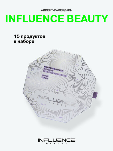 Представьте футуристичный адвент-календарь, который выглядит как восьмиугольная топографическая карта, где каждая грань — это уникальная координата на поверхности альтернативной звезды. Она — как скрытая планета с собственным рельефом и загадочными ландшафтами, указывающими точку на этой незнакомой территории. Адвент-календарь INFLUENCE BEAUTY, вдохновленный реальной топографией, — настоящая навигационная карта с ориентирами, к которым можно «прибыть» и исследовать каждый уголок. Внутри — 15 окошек, за которыми скрываются новинки и бестселлеры бренда: светоотражающий массажный консилер, фетровая ультрачерная подводка, тающие матовые румяна, удлиняющая тушь, палетка теней и другие средства. Открывая их, вы шаг за шагом соберете идеально сбалансированный набор. Это не просто коллекция продуктов, а гармонично подобранная косметичка, которая расскажет историю бренда, погружая в мир инноваций и красоты.