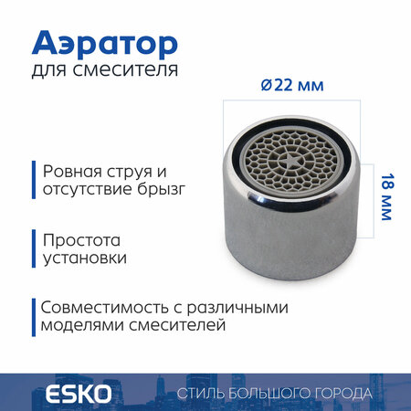 Аэратор для смесителя ESKO WaterSave, нержавеющая сталь, универсальный, хром