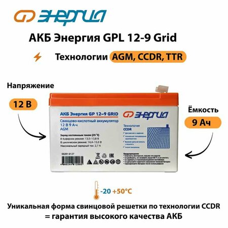 АКБ Энергия GP 12-9 Grid (аккумулятор, для ИБП, клеммы Т2, герметичный)