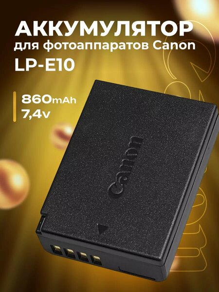 Аккумулятор для фотоаппаратов Canon LP-E10 емкостью 860 mAh, позволяющей делать до 800 кадров на одном полном заряде при работе с фотоаппаратами EOS 1100D , EOS 1200D , EOS 1300D и др. Сохраняет до 90% своего ресурса после 700 циклов заряда/разряда при регулярном использовании в течение 10 лет.- Используйте все энергоемкие функции вашего современного фотоаппарата: полного заряда аккумуляторной батареи LP-E10 достаточно для создания 800 фотографий- Возможность подзарядки аккумулятора в любое время и при любом остаточном заряде без потери емкости благодаря отсутствию эффекта памяти- Синхронизация с автоматикой отключения оригинального зарядного устройства при достижении полного заряда предотвратит поломку элементов батареи- Сохранение до 90% полезной емкости аккумулятора после 700 циклов заряда/разряда при регулярной эксплуатации в течение 10 лет.