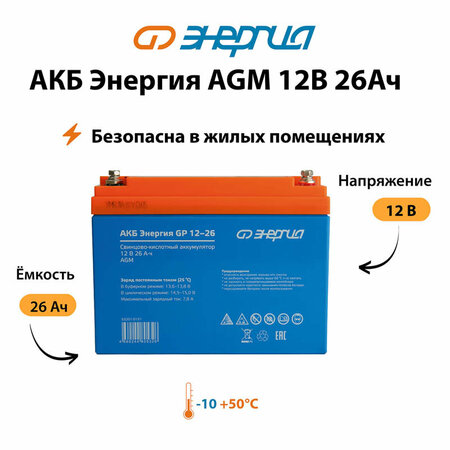 Аккумулятор для ИБП Энергия AGM 12v 26Ah (АКБ аккумуляторная батарея)