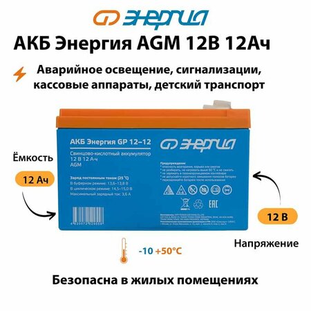 Аккумулятор для ИБП Энергия AGM 12v 12Ah (АКБ аккумуляторная батарея)
