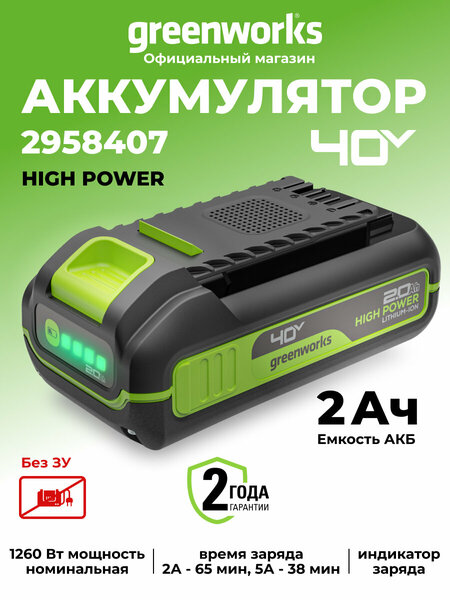 {"widgets":{"@card/ReviewBlockRatinginfo":{"/content/page/fancyPage/defaultPage/reviewBlock/ratingInfo":{"baobabNodeName":"reviewsLink","businessReviewCount":76,"businessRatingCount":320,"transitionId":"tr_6959022186693167274","marketText":"У всех продавцов:","ratingCountText":"320 оценок","reviewCountText":"76 отзывов","isRobot":false,"slug":"akkumulyator-greenworks-high-power-g40hp2-40v-2-ach-2958407","isMultilangPage":false,"userLanguage":"ru"}}},"meta":{"/content/page/fancyPage/defaultPage/reviewBlock/ratingInfo":{"name":"@card/ReviewBlockRatinginfo"}},"collections":{"businessReviewUgc":{"2233168556055023202":{"showMoreReviewButton":true,"showCreateReviewButton":false,"context":"eyJtb2RlbElkIjoxMjkyNTc0NjI2LCJzdXJmYWNlIjoicHJvZHVjdC1tYWluIiwic291cmNlIjoicHJvZHVjdC1tYWluIiwic2t1IjoxMDM4MTc4ODc2OTgsIm9za3UiOjEwMzYyODk1OTk1Nywib21vZGVsIjo4NTE3Nzg5MDgsImJ1c2luZXNzSWQiOjk0MTA1MH0=","items":["ri_400042968","ri_426832161","ri_403576194","ri_432882146","ri_432596386","ri_433505878","ri_423806407","ri_430764022","ri_429567983","ri_425585655","ri_420987467","ri_403836777","ri_404488483"],"mediaNavigationTransitionId":"tr_1879055123855022908"}}}}