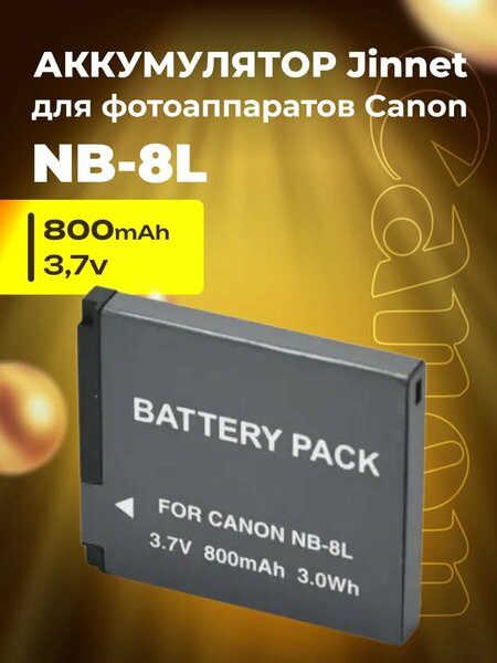 Аккумулятор Jinnet NB-8L для Canon емкостью 800 mAh, позволяющей делать до 280 кадров на одном полном заряде. Используйте все энергоемкие функции вашего современного фотоаппарата. Полного заряда аккумуляторной батареи Jinnet NB-8L для Canon достаточно для создания 280 фотографий . Возможность подзарядки аккумулятора в любое время и при любом остаточном заряде без потери емкости благодаря отсутствию “эффекта памяти” Синхронизация с автоматикой отключения оригинального зарядного устройства при достижении полного заряда предотвратит поломку элементов батареи Сохранение до 90% полезной емкости аккумулятора после 500 циклов заряда/разряд.