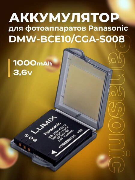 Аккумулятор Panasonic DMW-BCE10/CGA-S008 емкостью 1000 mAh, позволяющей делать до 330 кадров и 110 минут видео на одном полном заряде при работе с фотоаппаратами Lumix серии DMC-FS , DMC-FX и видеокамерами Panasonic серий HM , SDR , HM . Сохраняет до 90% своего ресурса после 500 циклов заряда/разряда при регулярном использовании в течение 10 лет.- Используйте все энергоемкие функции вашего современного фотоаппарата: полного заряда аккумуляторной батареи Panasonic DMW-BCE10/CGA-S008 достаточно для создания 330 фотографий и 110 минут видео- Возможность подзарядки аккумулятора в любое время и при любом остаточном заряде без потери емкости благодаря отсутствию эффекта памяти.- Синхронизация с автоматикой отключения оригинального зарядного устройства при достижении полного заряда предотвратит поломку элементов батареи- Сохранение до 90% полезной емкости аккумулятора после 500 циклов заряда/разряда при регулярной эксплуатации в течение 10 лет.