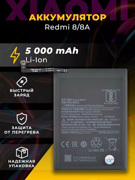 Аккумуляторная батарея для Xiaomi BN51 - это надежный и качественный продукт, который поможет продлить срок службы вашего смартфона. Она имеет емкость 4900 мА·ч, что обеспечивает длительное время работы без подзарядки. Данная АКБ подходит для использования с моделями Xiaomi Redmi 8 и 8А. Аккумулятор изготовлен из высококачественных материалов, что гарантирует его долговечность и надежность. Он обладает высокой емкостью и быстрой зарядкой, что позволяет быстро восстановить заряд вашего устройства. Кроме того, аккумулятор имеет защиту от перегрева, короткого замыкания и перезарядки, что делает его еще более безопасным в использовании. Преимущества данной аккумуляторной батареи: - Высокая емкость и быстрая зарядка - Подходит для моделей Xiaomi Redmi 8/8A - Изготовлена из высококачественных материалов - Защита от перегрева, короткого замыкания и перезарядки - Продлевает срок службы вашего устройства Если вы ищете надежный и качественный аккумулятор для своего Xiaomi Redmi 8 или 8А, то данная АКБ - отличный выбор. Она обеспечит долгое время работы вашего устройства без подзарядки и защитит его от возможных проблем.