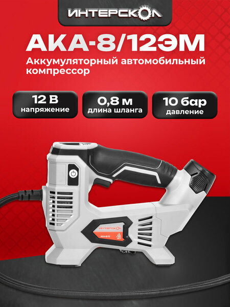 Аккумуляторный компрессор ИНТЕРСКОЛ АКА-8/12ЭМ, 12 В, 10.3 бар, без АКБ и ЗУ (812.0.0.70)