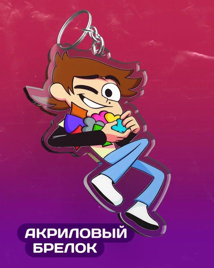 Брелок из акрила высокого качества от художников мультсериала «13 карт» студии «Феникс». На брелоке высотой около 7 см изображен один из героев мультфильма «13 карт» и комикса «Земля королей». Изделие содержит крепление в виде металлических цепочки и кольца, упаковано в прозрачный пакетик с картонной подложкой. Официальная продукция от студии «Феникс» и «Жар. Мерч».