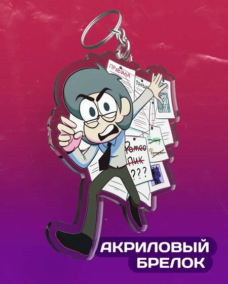 Брелок из акрила высокого качества от художников мультсериала «13 карт» студии «Феникс». На брелоке высотой около 7 см изображен один из героев мультфильма «13 карт» и комикса «Земля королей». Изделие содержит крепление в виде металлических цепочки и кольца, упаковано в прозрачный пакетик с картонной подложкой. Официальная продукция от студии «Феникс» и «Жар. Мерч».