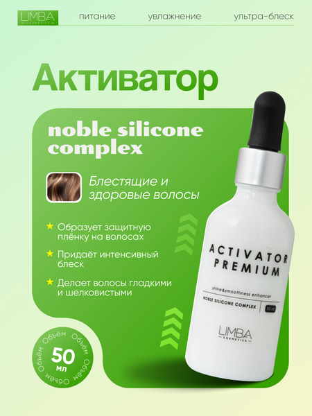 Активатор блеска волос Limba Cosmetics Activator Noble Silicone Complex, 50 мл Limba Cosmetics Activator Noble Silicone Complex — это высокотехнологичный концентрат «благородных» силиконов, разработанный для придания волосам безупречного зеркального блеска, шелковистости и мгновенного кондиционирующего эффекта. В отличие от обычных силиконов, этот комплекс не накапливается в волосах, позволяя им «дышать». Основные преимущества: Зеркальный блеск: Создает на поверхности волоса светоотражающее покрытие, которое подчеркивает яркость цвета и придает волосам здоровое сияние. Мгновенное распутывание: Облегчает расчесывание даже самых непослушных и поврежденных волос, предотвращая их механическое повреждение. Термозащита: Создает барьер, минимизирующий негативное воздействие фена, утюжка или плойки. Антистатический эффект: Устраняет пушистость и наэлектризованность волос, делая их более послушными при укладке. Защита кончиков: «Склеивает» посеченные кончики и предотвращает их дальнейшее расслоение, создавая эффект ламинирования. Кому подходит: Пористым и пушистым волосам. Тусклым волосам, лишенным блеска. Длинным волосам, склонным к спутыванию. Волосам, часто подвергающимся горячим укладкам. Способ применения: Активатор является концентратом и может использоваться в различных вариациях: Обогащение ухода: Добавьте несколько капель активатора в маску или бальзам для усиления кондиционирующих свойств. Тщательно смойте. Несмываемый финиш (блеск): Разотрите 1-2 капли в ладонях и распределите по полотну сухих или влажных волос, уделяя особое внимание кончикам. Не смывать. Добавка в составы: Может использоваться мастерами в процедурах восстановления для улучшения скольжения и визуального эффекта. Объем: 50 мл. Тип продукта: Концентрат «благородных» силиконов.