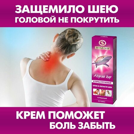 Акулья сила. Крем от боли и прострелов в шейно-воротниковой зоне, при остеохондрозе, согревающий. Акулий жир и перец стручковый. Объем 75 мл / лучикс