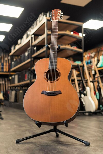 BATON ROUGE AR21C/A – шестиструнная акустическая гитара с корпусом Auditorium. Верхняя дека выполнена из массива канадского кедра, из зернистого клёна изготовлена нижняя дека и обечайка. Отделка выполнена натуральной с открытыми порами, а благодаря матовому покрытию видна текстура древесины. Гриф сделан из красного дерева с накладкой из дерева Овангколь. Окантовка гитары сделана из черного ABS. Колковый механизм – литой, матовый, хромированный с черными лепестками. Мензура у гитары – 630 мм, ширина грифа у нулевого порожка – 46 мм.