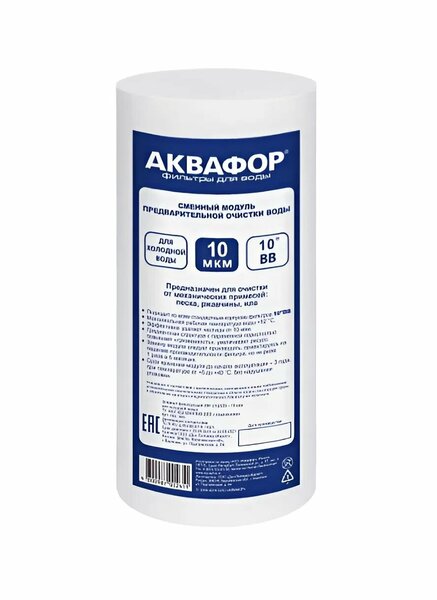 Сменный модуль Аквафор ЭФГ 112/250 10 мкм х/в предназначен для грубой очистки холодной воды. Он используется в корпусах предфильтров Гросс 10 и подходит ко всем стандартным корпусам фильтров 10"BB. Модуль изготовлен из 100% полипропилена, что обеспечивает его долговечность и надежность. Градиентная структура с переменной пористостью повышает "грязеемкость" и увеличивает ресурс модуля. Пористость фильтрующего материала составляет 10 мкм, что позволяет эффективно удалять механические загрязнения и другие примеси из воды. Максимальное рабочее давление составляет 6.5 бар, а максимальная рабочая температура – 52°C. Аквафор ЭФГ 112/250 10 мкм х/в подходит для механической фильтрации и очистки от механических частиц размером 10 мкм. Выбирая сменный модуль Аквафор ЭФГ 112/250 10 мкм х/в, вы получаете качественный продукт от известного производителя Аквафор, который обеспечит надежную и эффективную очистку вашей холодной воды.