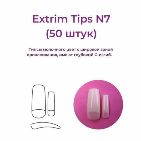 Типсы молочного цвета с широкой зоной приклеивания, имеют глубокий С-изгиб. Типсы Alex Beauty Concept Extrim Tips №7, (50 ШТ)