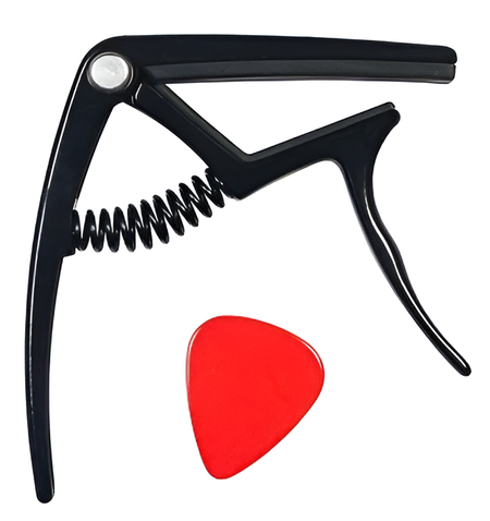 Каподастр незаменимый помощник для тех музыкантов, которым необходимо изменить тональность инструмента без перестройки и для любителей экспериментов со звуком. Лёгкий, быстрый, точный напоминающий изящный пистолет металлический каподастр для акустической и электрогитары, который позволит максимально быстро изменить строй всего инструмента. Характеристики: Каподастр для акустической и электрогитары Модель: A007K / BK Механизм фиксации: пружинный Материал: цинковый сплав Цвет: чёрный Защитные накладки: материал - резина, цвет - чёрный В комплекте: медиатор в подарок Упаковка: блистер Производство: Китай.