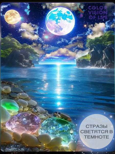 Алмазная мозаика на подрамнике 40х50 светящиеся стразы Луна