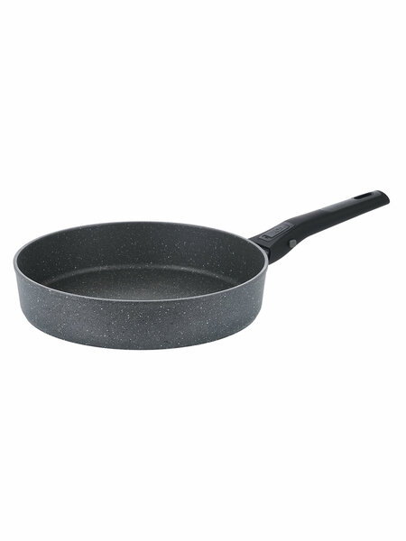 Алюминиевая сковорода Gipfel Granit 52705 диаметром 28 см и высотой 6 см. Диаметр дна 27 см. Сковорода изготовлена из кованого алюминия, что позволяет ей быстро нагреваться и равномерно распределять тепло. Толщина стенок 2,5 мм, толщина дна 4 мм. Сковорода с премиальным 2-слойным устойчивым к царапинам антипригарным покрытием Pfluon Premium идеальна для ежедневного применения. Еда в ней не пригорает и не прилипает ко дну. Благодаря многослойному покрытию, вы добьётесь превосходных результатов в приготовлении гарниров и основных блюд. Такие ингредиенты, как мясо или овощи, не изменят свои вкусовые свойства. Покрытие имеет рельефную структуру с мраморным рисунком. Сковорода выполнена в лаконичном дизайне серого цвета. Съемная ручка из бакелита с покрытием Soft-touch – термостойкого пластика, который не нагревается и не скользит в руке. Без ручки сковороду можно использовать как форму для запекания в духовом шкафу. Сковорода в фирменной упаковке. Рекомендации по использованию и уходу: